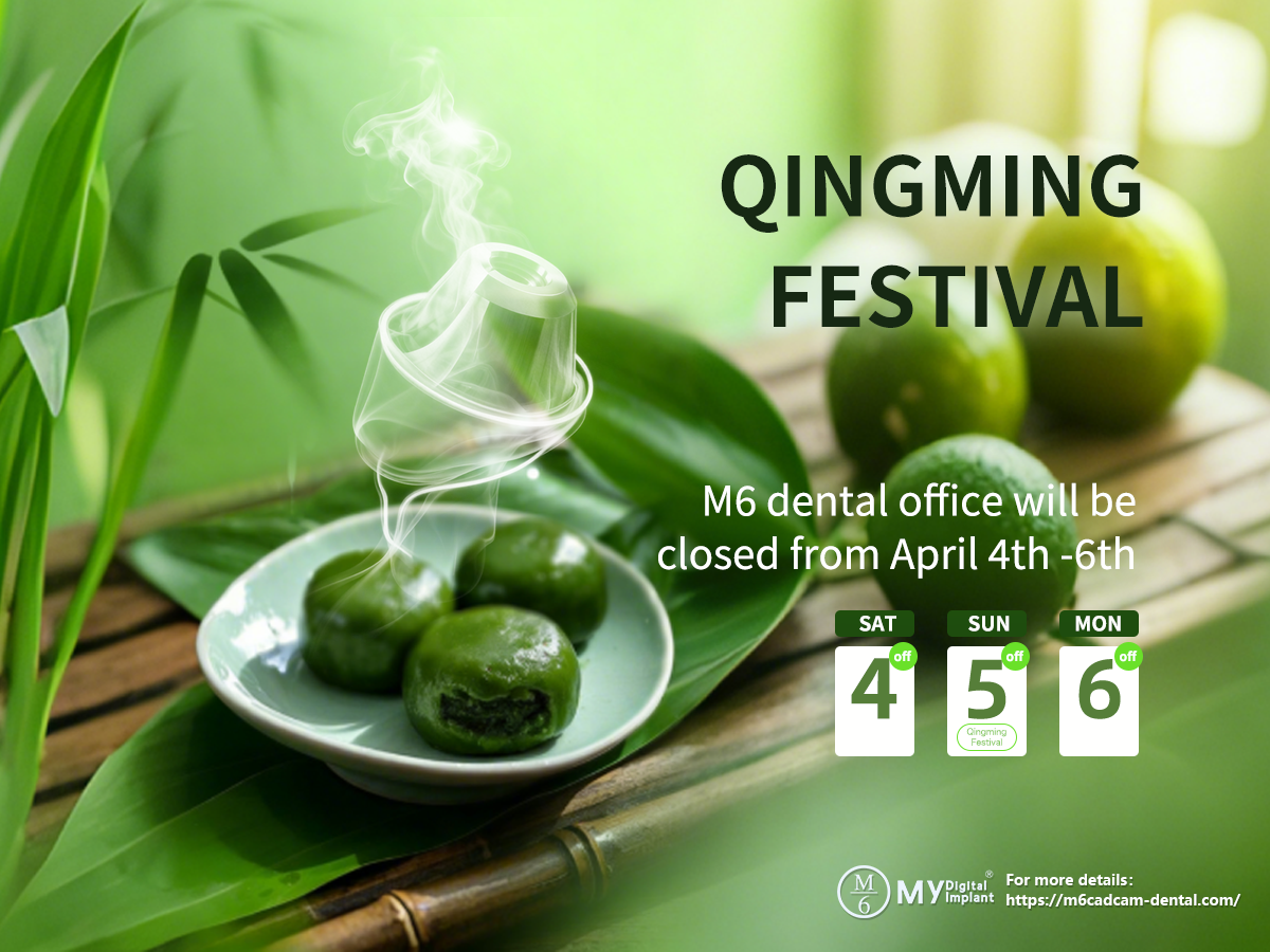M6 dental office will be closed from April 4th-6th for 3-day QingMing Festival, pls arrange your urgent order before our holiday.